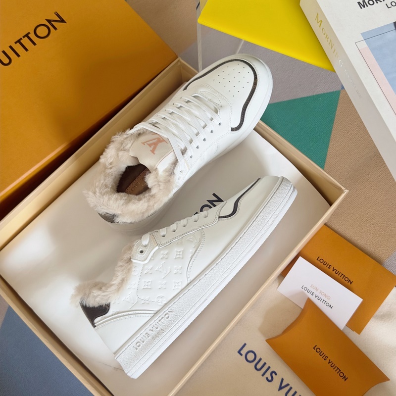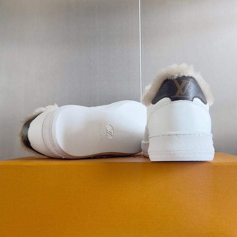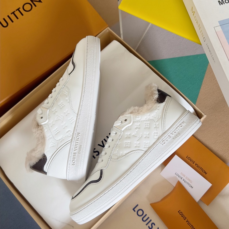 Version haut de gamme : Baskets blanches décontractées en laine LV Louis Vuitton L Home Donkey, série Stadium. Produites à partir d’un achat original, ces baskets LV Stadium sont confectionnées en laine de mouton Monogram douce et doublées de cuir de laine moelleux. Elles affichent un nouveau look hivernal. Une bordure en cuir de vachette et une semelle extérieure légère en caoutchouc complètent ce design sophistiqué. L’arrière intègre des éléments en cuir et le logo Louis Vuitton estampé. Emballage soigné. Tissu : cuir de vachette importé de première couche. Doublure : doublure en laine chaude importée. Semelle : semelle extérieure en caoutchouc moulé antidérapante. Épaisseur de la semelle : 3 cm. Pointure : 35-41.