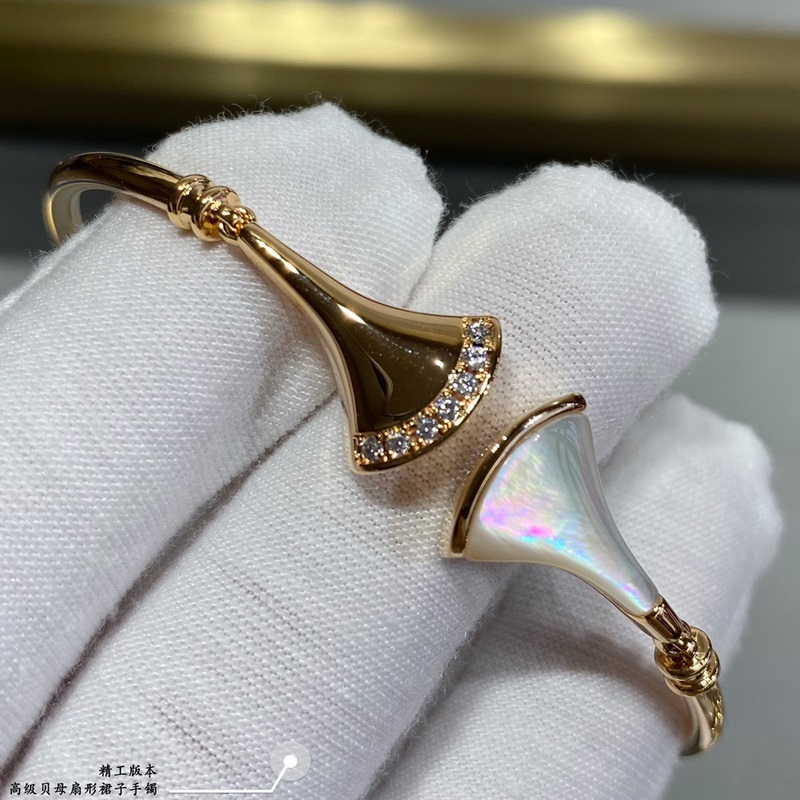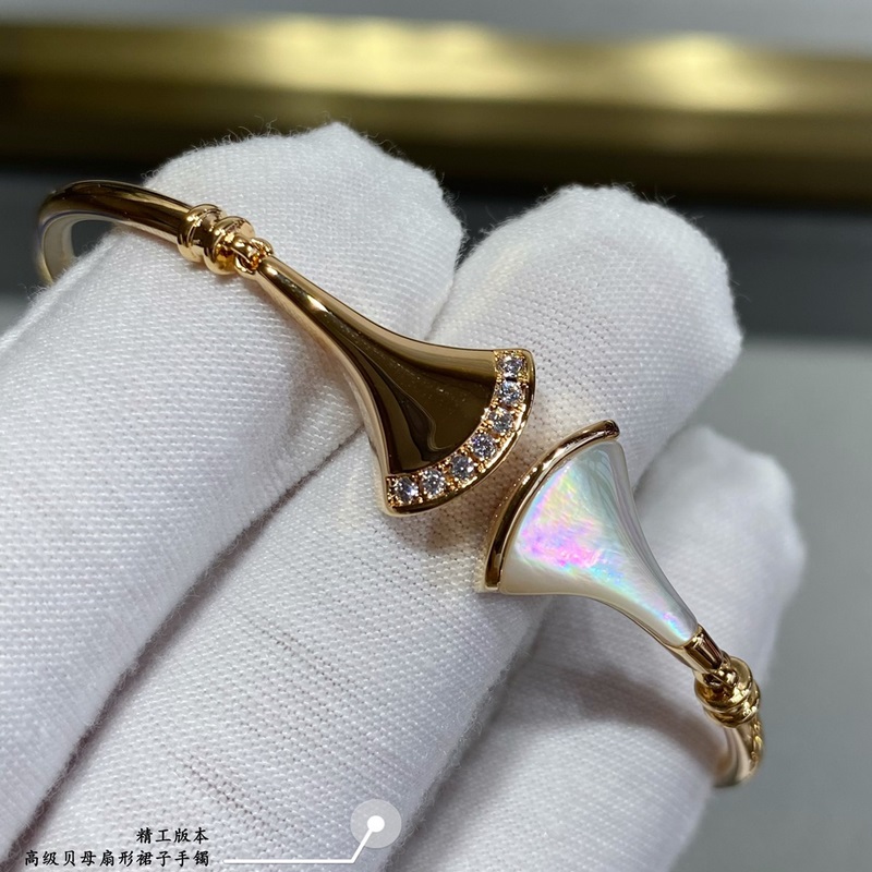 V plaqué or avec or 5240310 (taille correspondante) Bulgari nacre de haute qualité des deux côtés du bracelet jupe en éventail, plein de charme féminin, louant l’élégance italienne ultime, personnalisation haut de gamme, technologie de micro-incrustation, synchronisation de commande d’origine, le véritable objet est très texturé, veuillez chérir les bons produits.