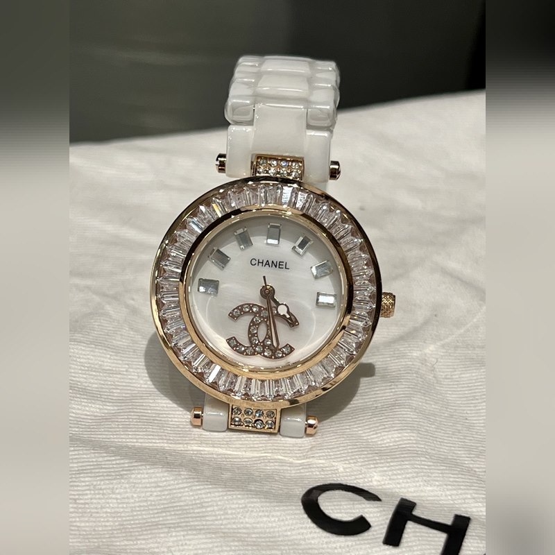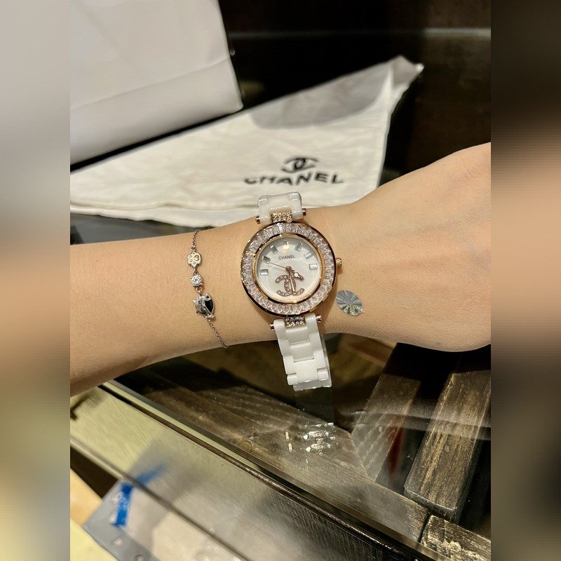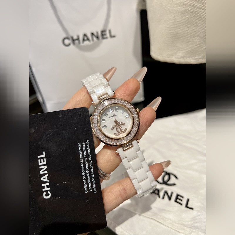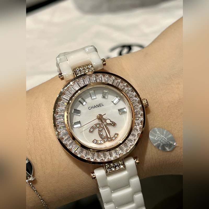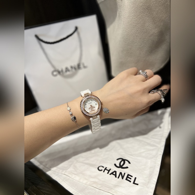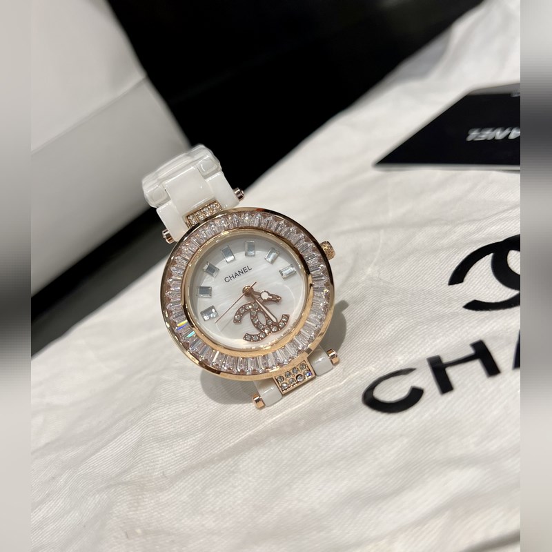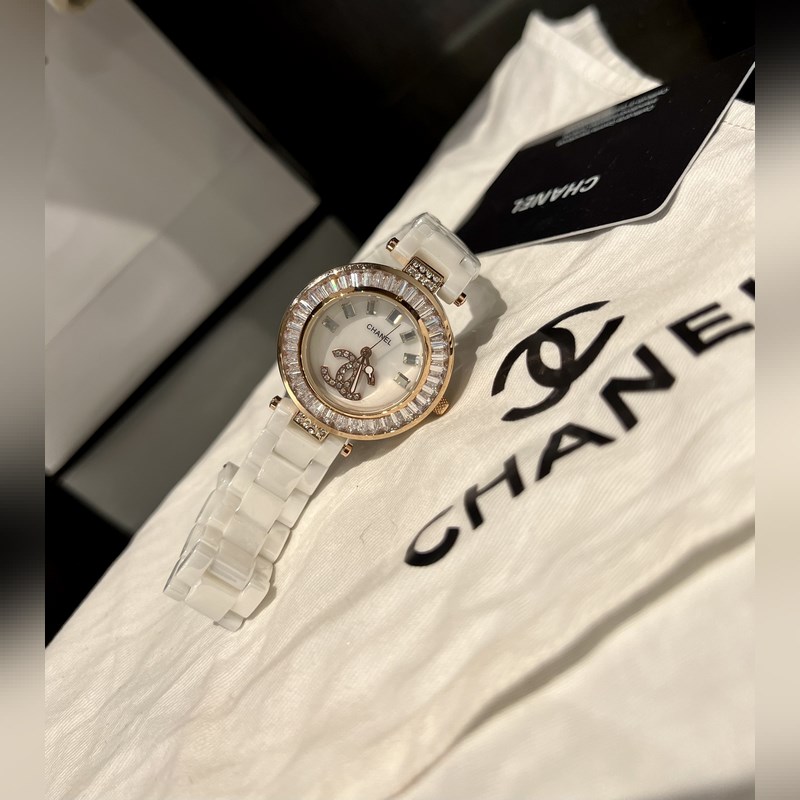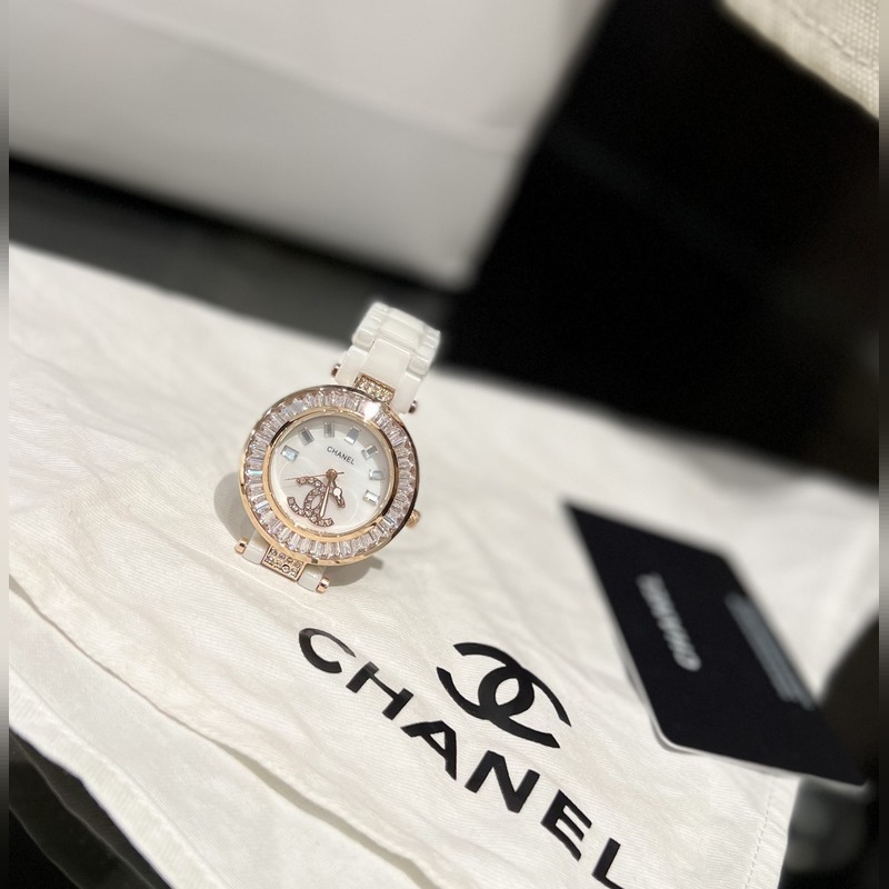 Le modèle le plus populaire, la série en céramique Chanel CHANEL, le même modèle que les célébrités, fabriqué en céramique importée de haute qualité, la lunette est incrustée de diamants carrés, la surface est une combinaison parfaite de coquillages de perles et de diamants, équipée d’un mouvement à quartz d’origine