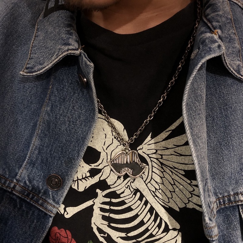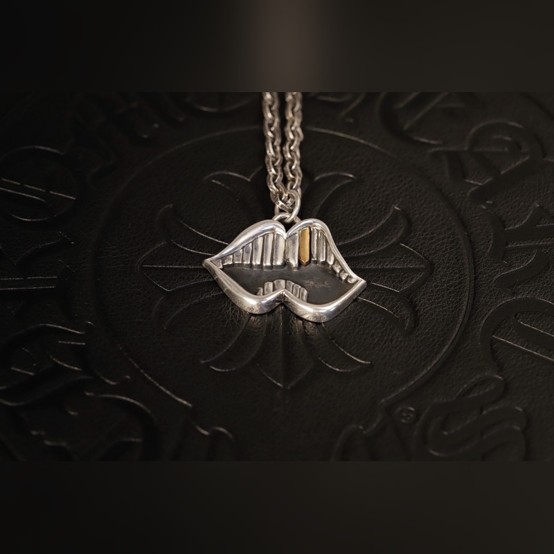 Collier avec pendentif en forme de bouche et de dents en or mat