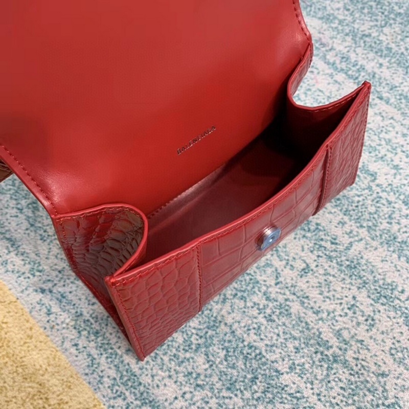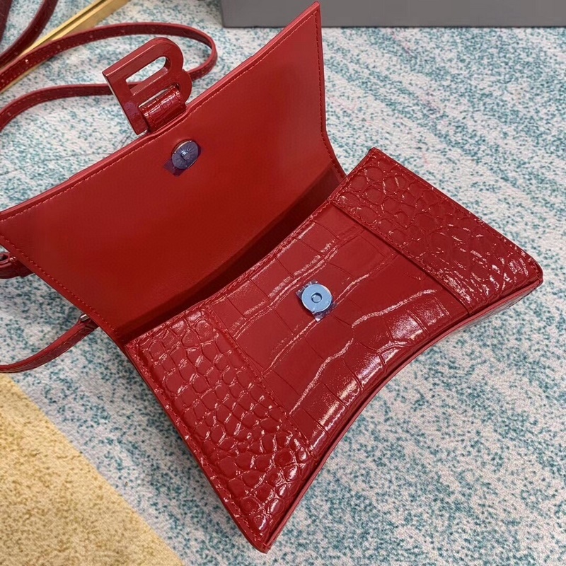 Le sac Hourglass, épais et à motif crocodile, signé Balenciaga, est proposé cette saison. Petit modèle : BG8896. Sa forme arquée emblématique est reconnaissable entre toutes. Il attire le regard dès le premier coup d’œil. Il est vraiment tendance. Sa surface lisse et plate évoque une forme de demi-lune. Il est doté d’un anneau métallique en forme de B. La texture du cuir de vachette est également très agréable et élégante. Petits enfants, continuez à acheter ! Dimensions : 8 x 21 cm. Code : SD96181050