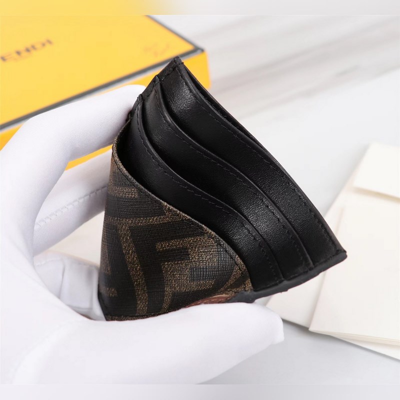 Porte-cartes FENDI en PVC marron. Référence : 2020568. Présentation : Le nouveau sac à main pour le printemps et l’été, en cuir de vachette nappa importé de première couche. Ses jolis yeux incarnent encore l’essence même des éléments Fendi de ces dernières années. Couleurs assorties, très beau, on ne peut plus le lâcher. Fabriqué en cuir de vachette de petite taille, avec de belles finitions assorties, doublure exclusive Fendi, parfaite. Huit emplacements pour cartes intégrés. Couleur : noir. Dimensions : 10,5 x 9 cm.