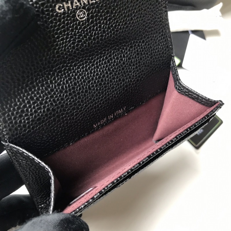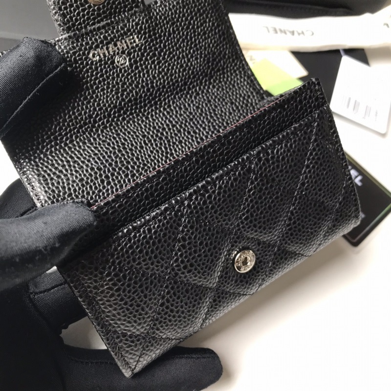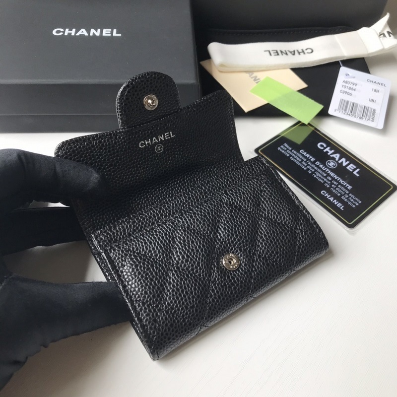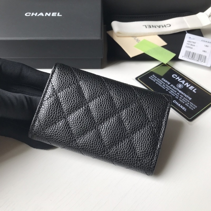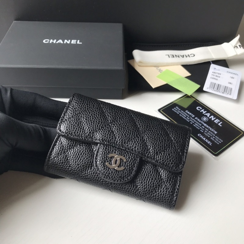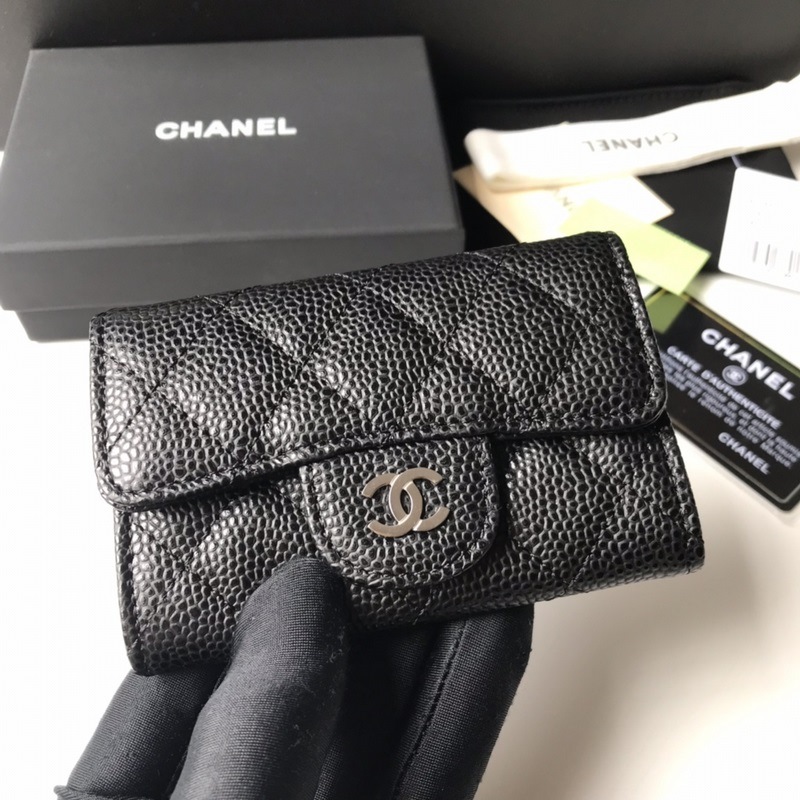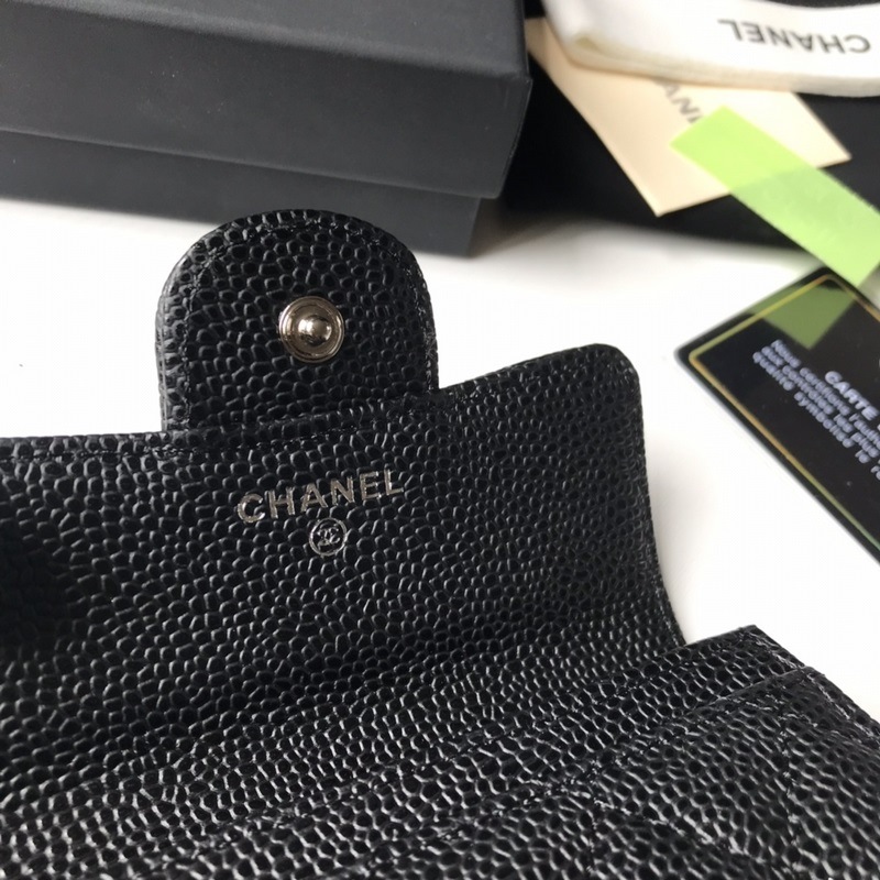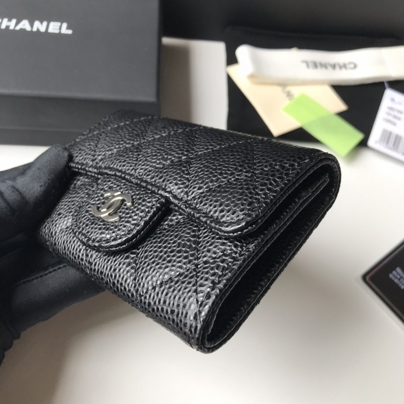 Porte-cartes classique CHANEL, porte-monnaie à motif losanges, modèle A80799, boule noire argentée. Taille 11 x 8,5 cm.