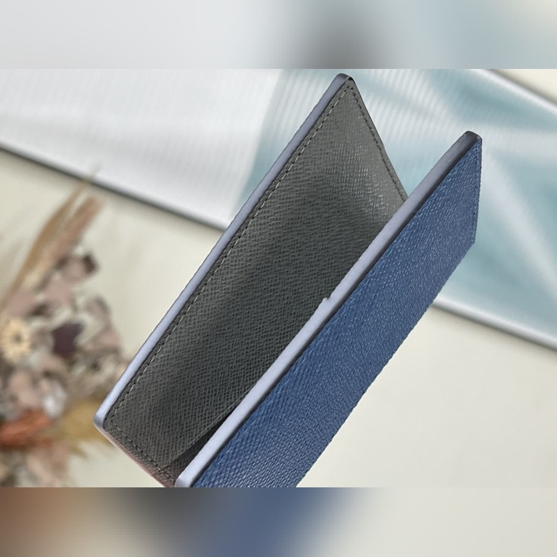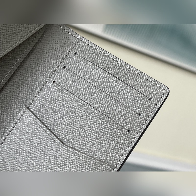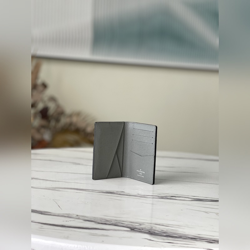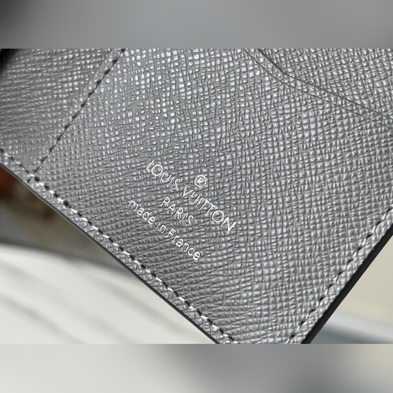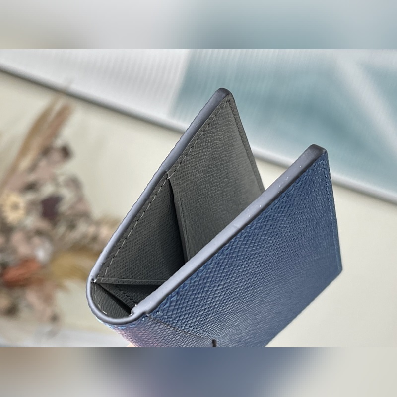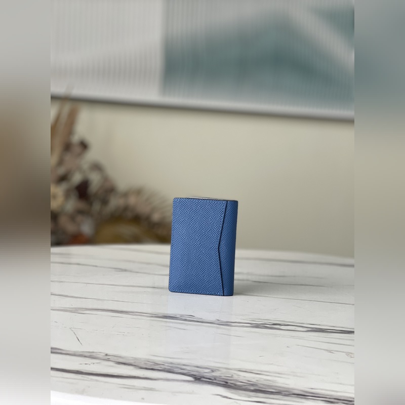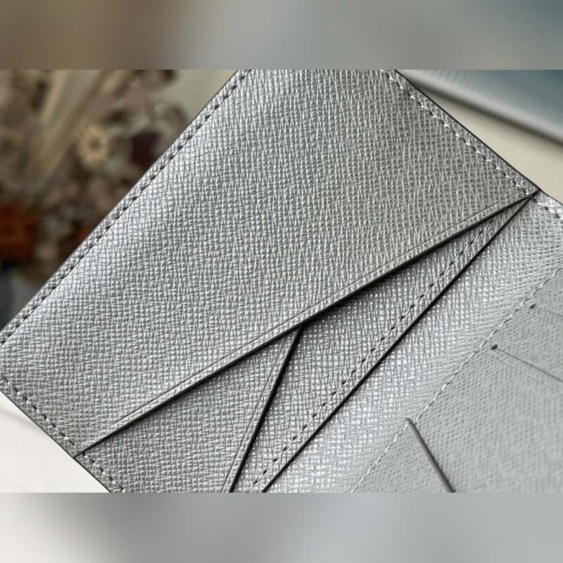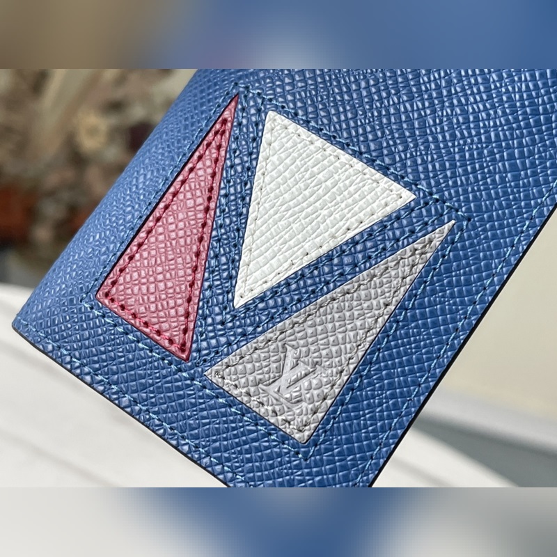 Le motif en V est incrusté dans le cuir fin avec une marqueterie raffinée, faisant écho au logo traditionnel aux couleurs vives. Sa conception fine offre un grand espace et se glisse facilement dans une poche. Dimensions : 8 x 11 x 1 cm