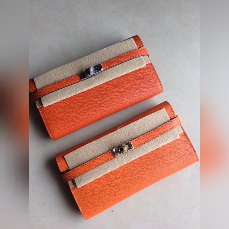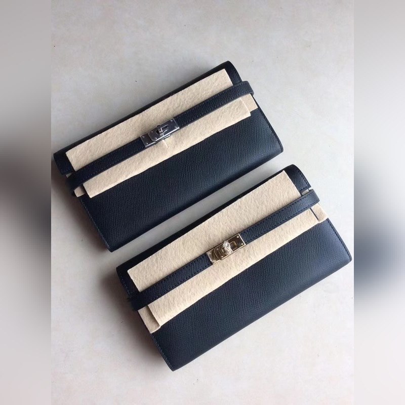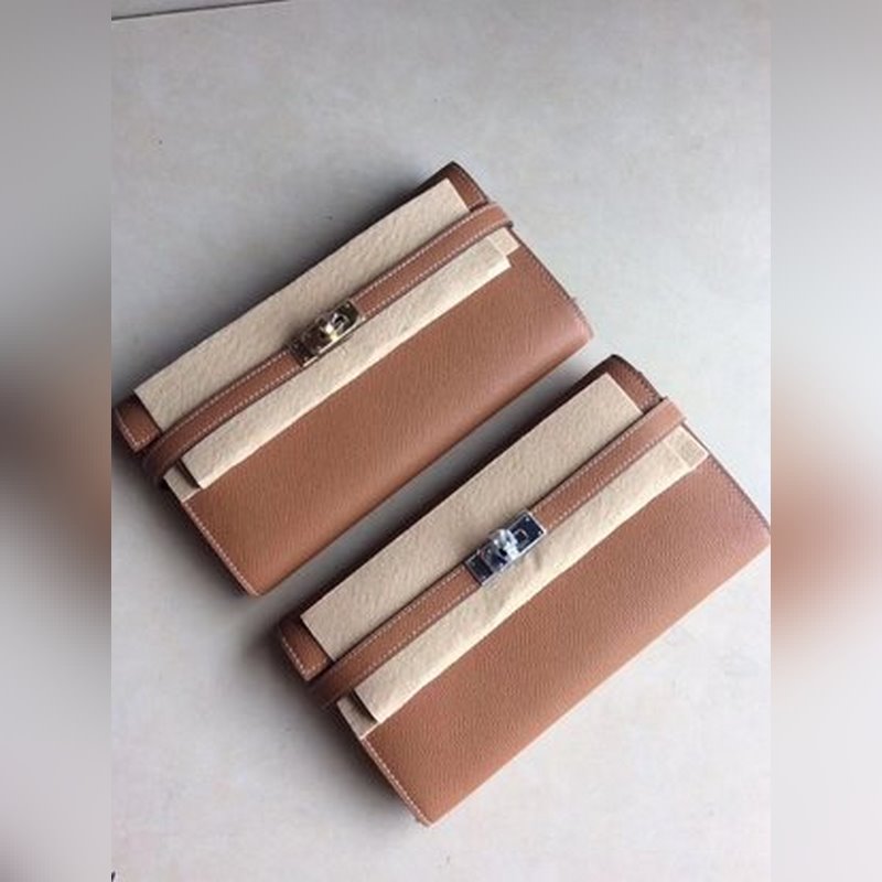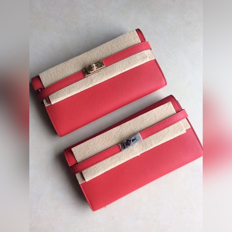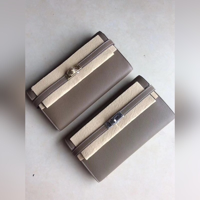 Portefeuille Hermès Kelly en cuir Epsom, boucle dorée et argentée.