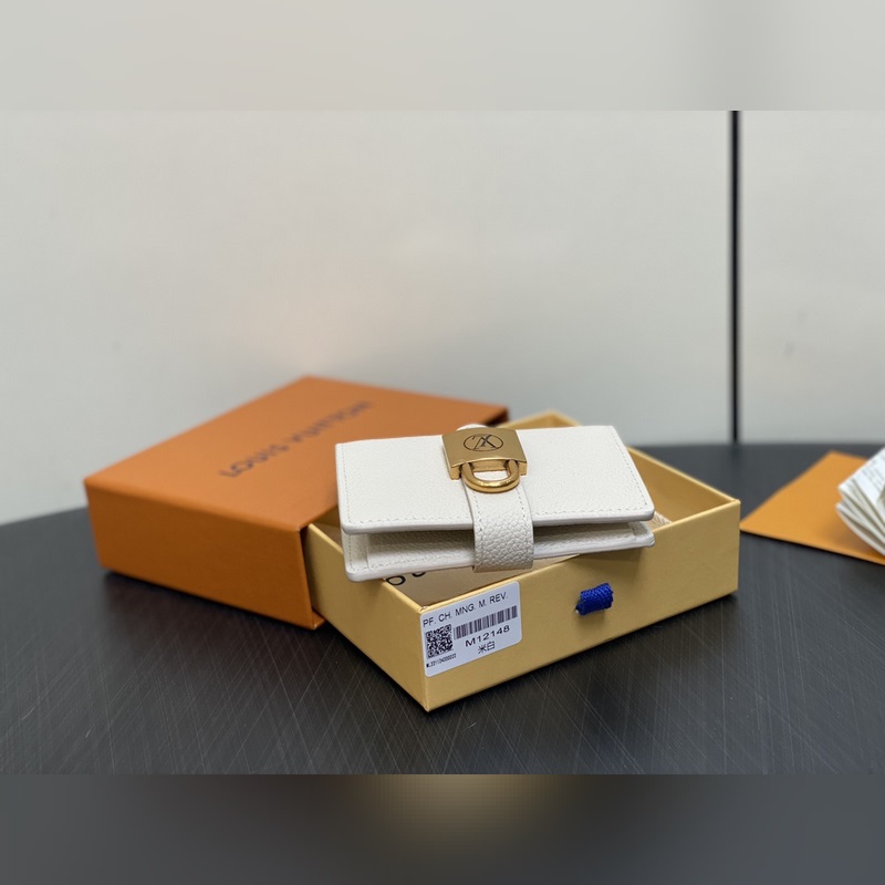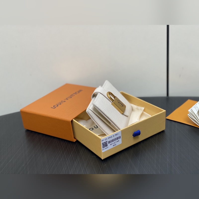 Nouveau modèle de cette année : le portefeuille Lowy Compact M12148 en cuir beige, version marron et noir, célèbre le savoir-faire traditionnel de la Maison tout en affichant un design minimaliste. Réalisé en cuir de veau lisse, il est doublé de cuir de vachette luxueux et orné d’un cadenas doré antique raffiné. Outre ses multiples compartiments pour les pièces et les billets, l’intérieur, doté de 3 emplacements pour cartes, est également élégant. Dimensions : 11 x 8,5 x 2 cm.