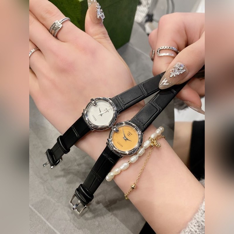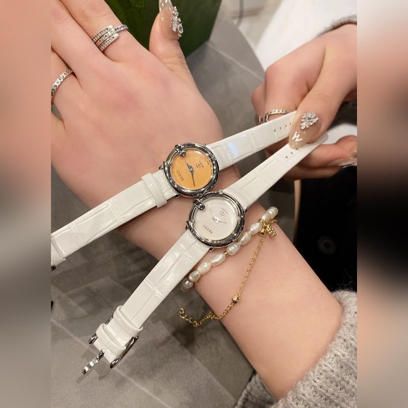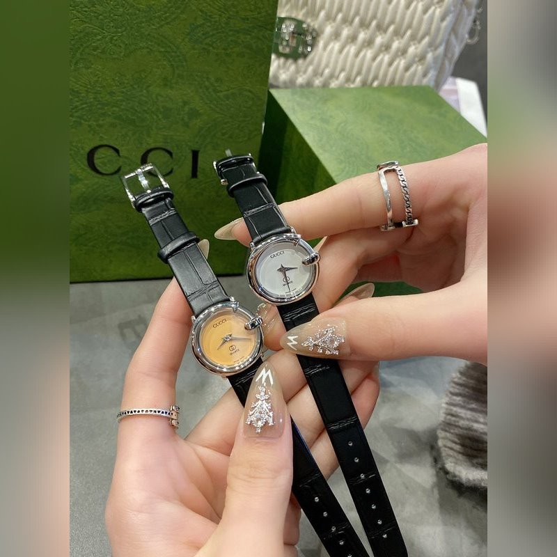 Cette marque est un modèle de minimalisme. Son principal atout est le design de son cadran. Simple, varié et élégant, il brise les stéréotypes. Les montres Gucci donnent une impression particulière de singularité. Dans la tendance du respect du style personnel, ce concept est indéniablement réussi, avant-gardiste, avec une boucle originale des plus épurées, tendance et simples. Cadran 26 mm × 14 mm