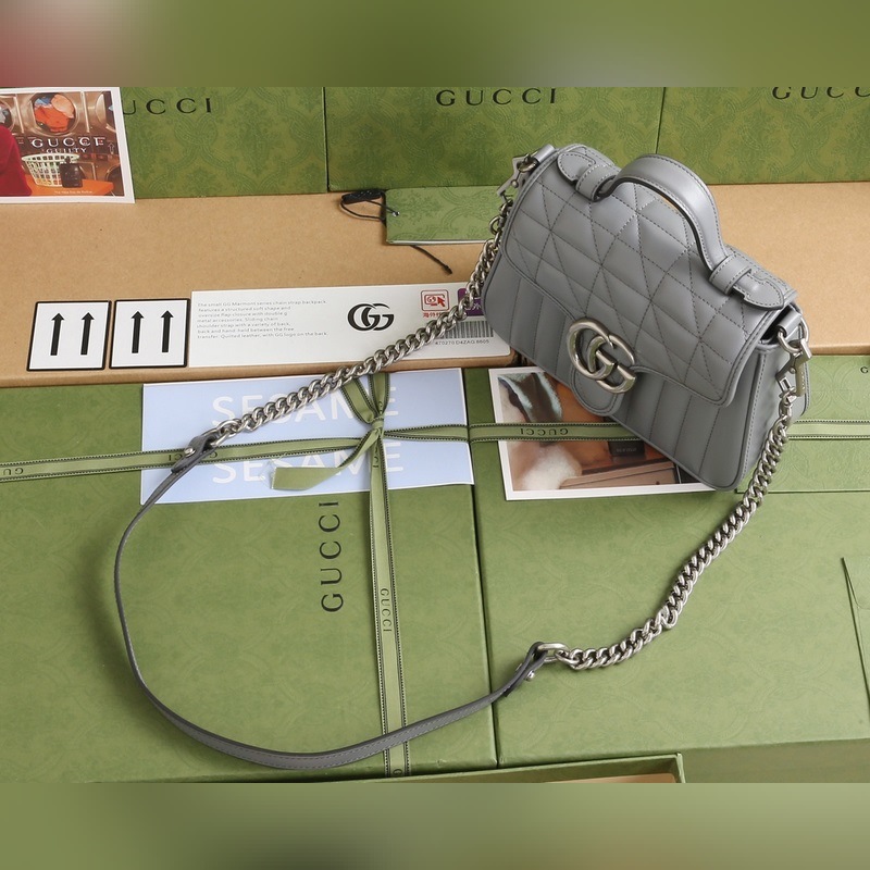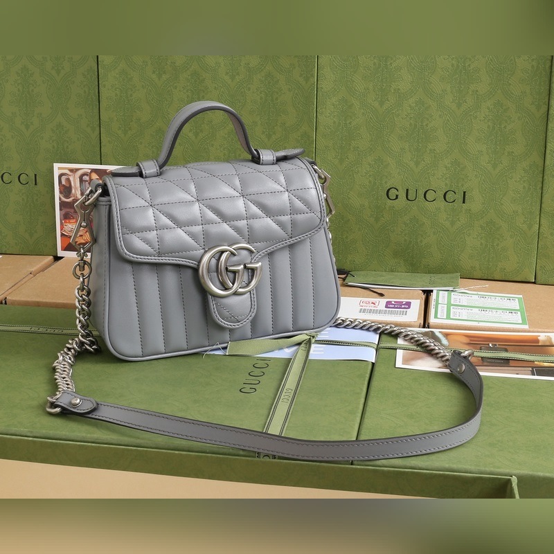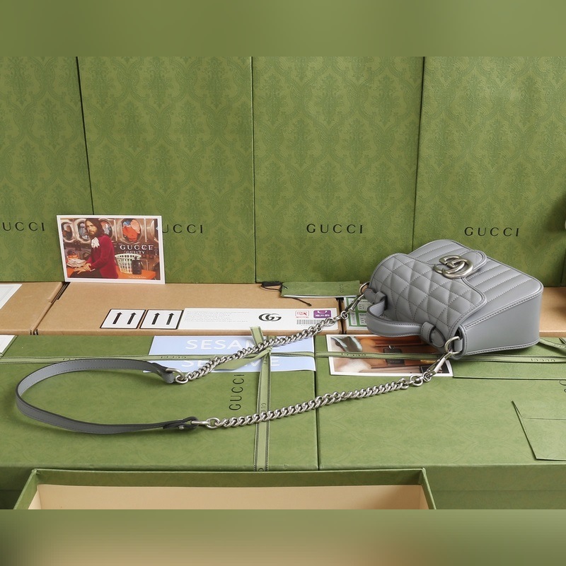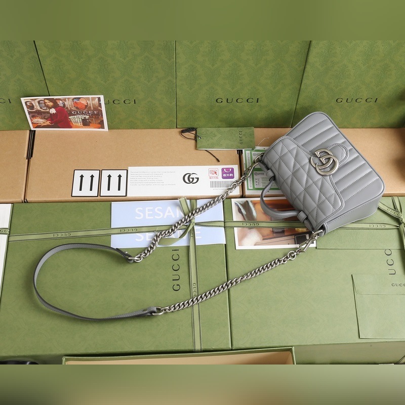Sac à main GUCCI GG Marmont, modèle à bandoulière et à épaule, numéro de modèle : 583571, motif géométrique gris. Le sac à main QGG Marmont est fabriqué en cuir importé d’origine et présente des pièces d’origine. Toutes les coutures sont importées. La série originale italienne est fabriquée avec du cuir importé. La nouvelle série Cadenas est également fabriquée avec du cuir importé. Cette nouvelle collection s’adapte aux couleurs des quatre saisons et met en valeur les looks. Le double G crée une multitude de charmes. Son design, très agréable à porter, est particulièrement attrayant. Dimensions : 21 cm x 15,5 cm x 8 cm.