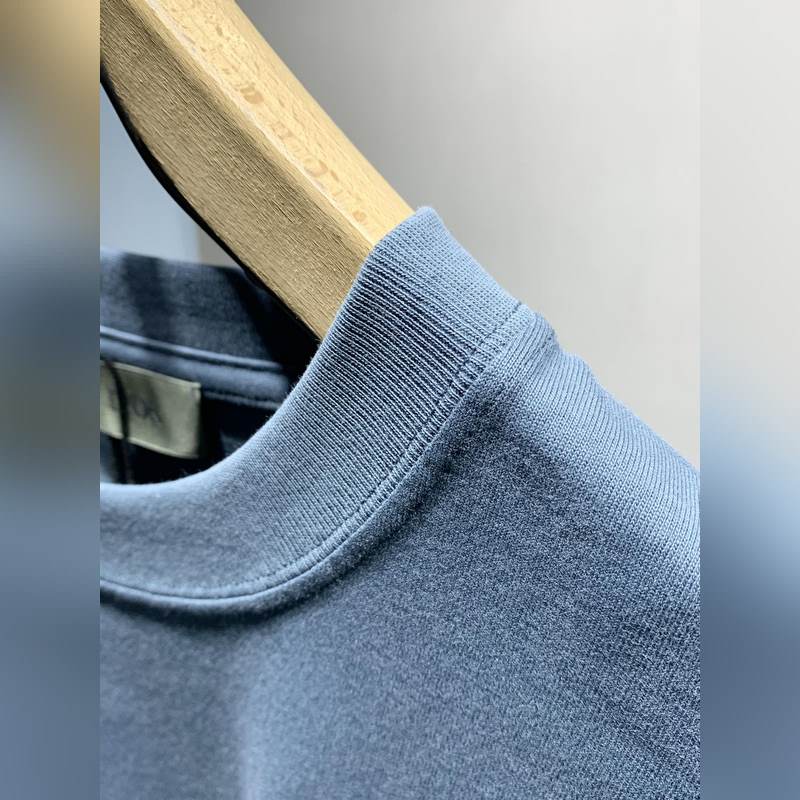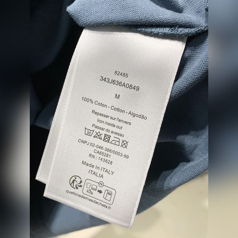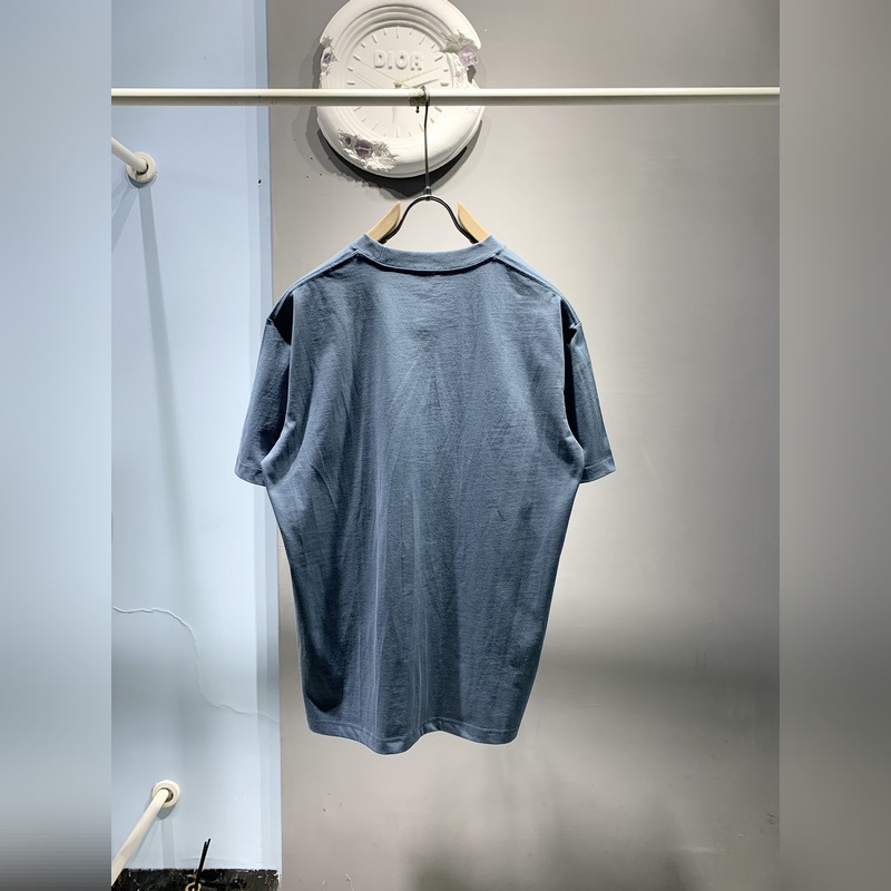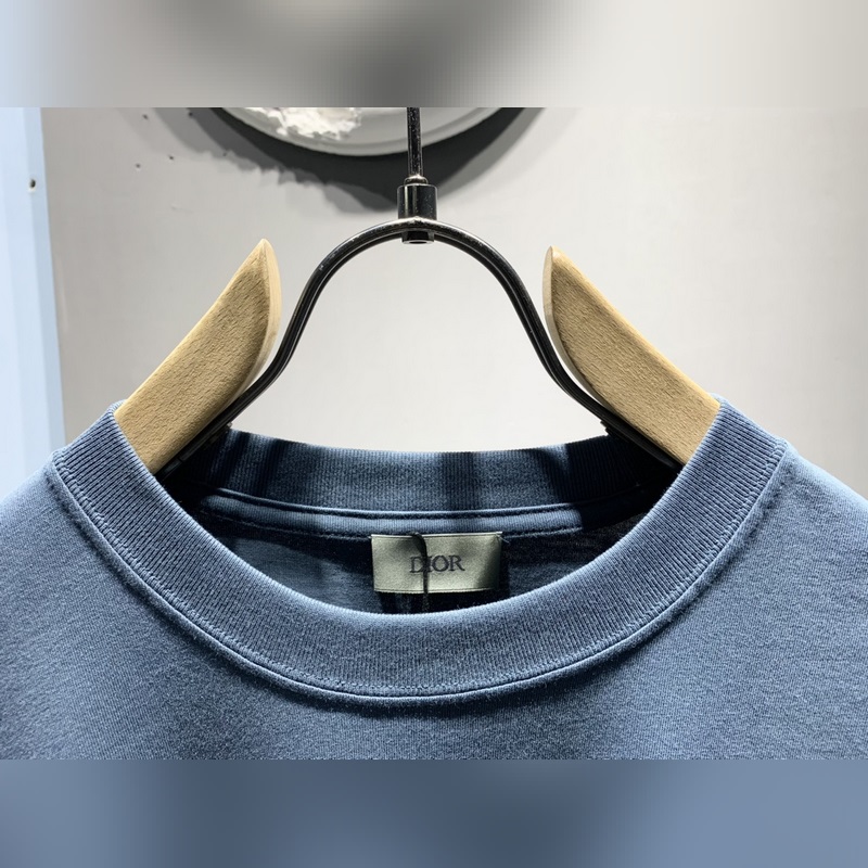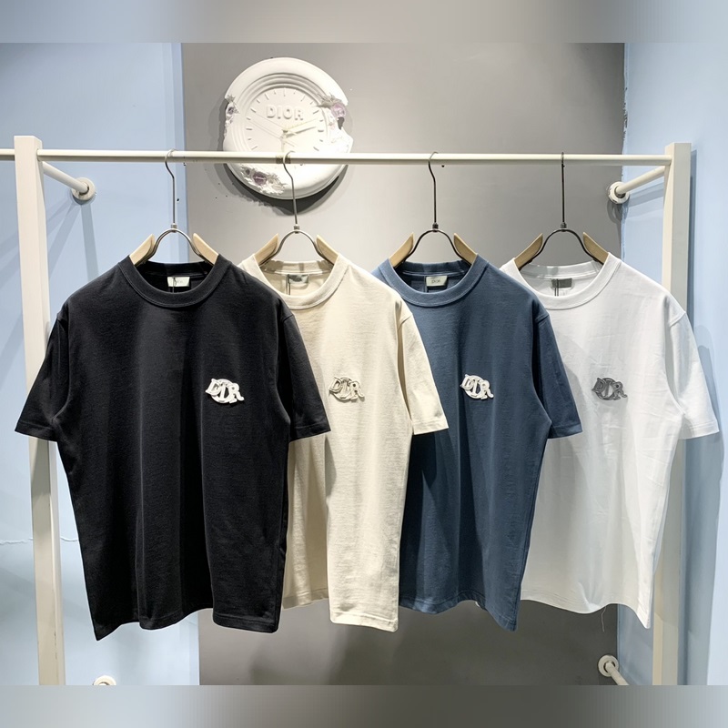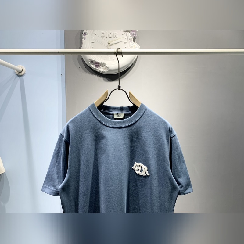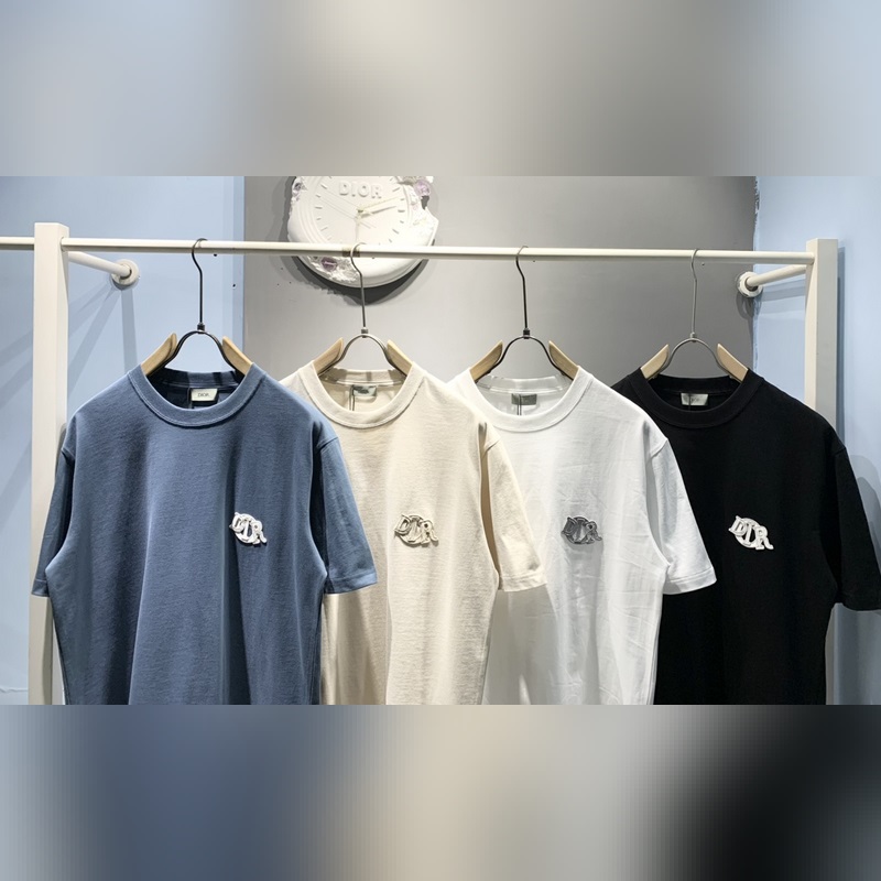 Ce t-shirt est fabriqué en jersey 100 % coton, lavé puis façonné, pesant 310 grammes, avec un logo Dior Charm tridimensionnel et distinctif superposé sur la poitrine, réinterprétant le logo Dior classique pour créer un look estival