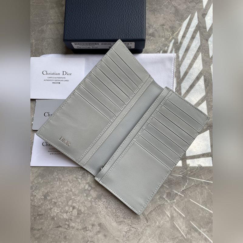 Pince de costume Dior Homme Grise, Modèle n° Z0BBC002. Cuir de vachette imprimé Oblique Galaxy, cuir de vachette lisse creux avec doublure réfléchissante, pour un style impeccable. Modèle à deux volets, 16 emplacements pour cartes et 4 compartiments pour billets, housse de protection incluse, très pratique. Dimensions : 18,5 x 9,5 cm.