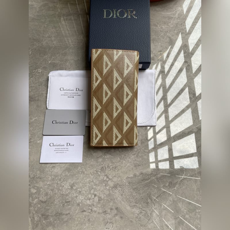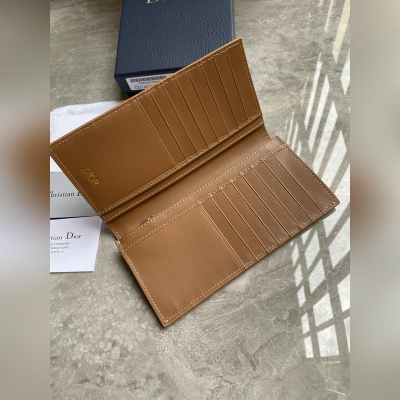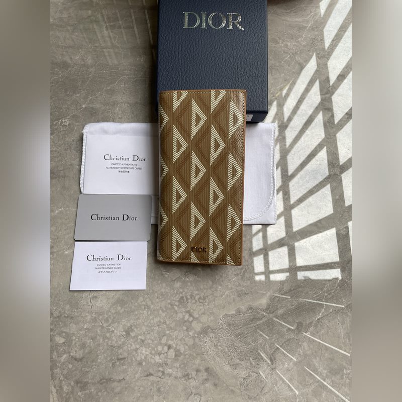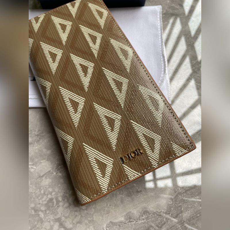 Pince de costume Dior pour homme, modèle Z0BBC002. La toile marron à motif losanges CD est soigneusement confectionnée pour sublimer votre style. Cuir de vachette lisse marron, deux volets verticaux, 16 emplacements pour cartes intégrés, 4 compartiments pour les billets et un compartiment zippé pour la monnaie, avec une housse de protection incluse. Très pratique. Dimensions : 18,5 × 9,5 cm.