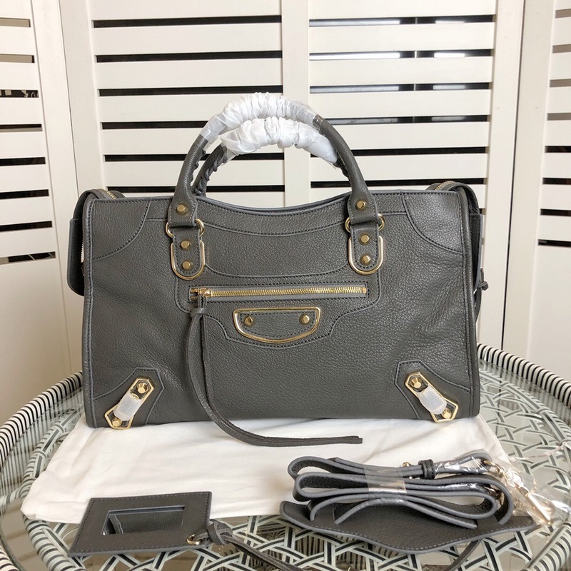 Grand sac de moto Balenciaga en cuir de chèvre gris, réplique BLSJ9, 38 x 24 x 14 cm