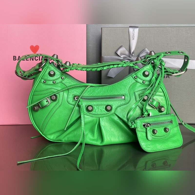 Grand sac réplique Balenciaga demi-lune vert Dumpling, hommage à la série moto classique