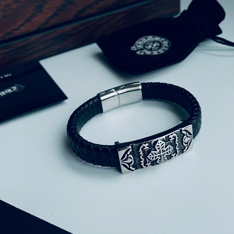 Bracelet en cuir classique Chrome Hearts avec croix et fleur, authentique et vintage