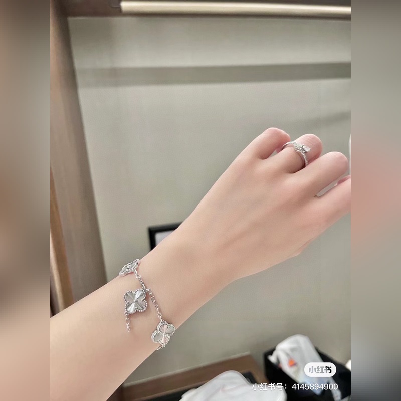 Bracelet VCA Trèfle à quatre feuilles Or K Nacre grise Design artistique