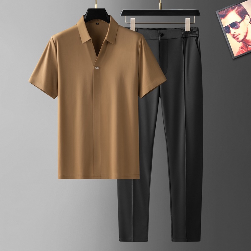 Polo Ferragamo sans coutures à manches courtes, style business décontracté pour homme, 2023