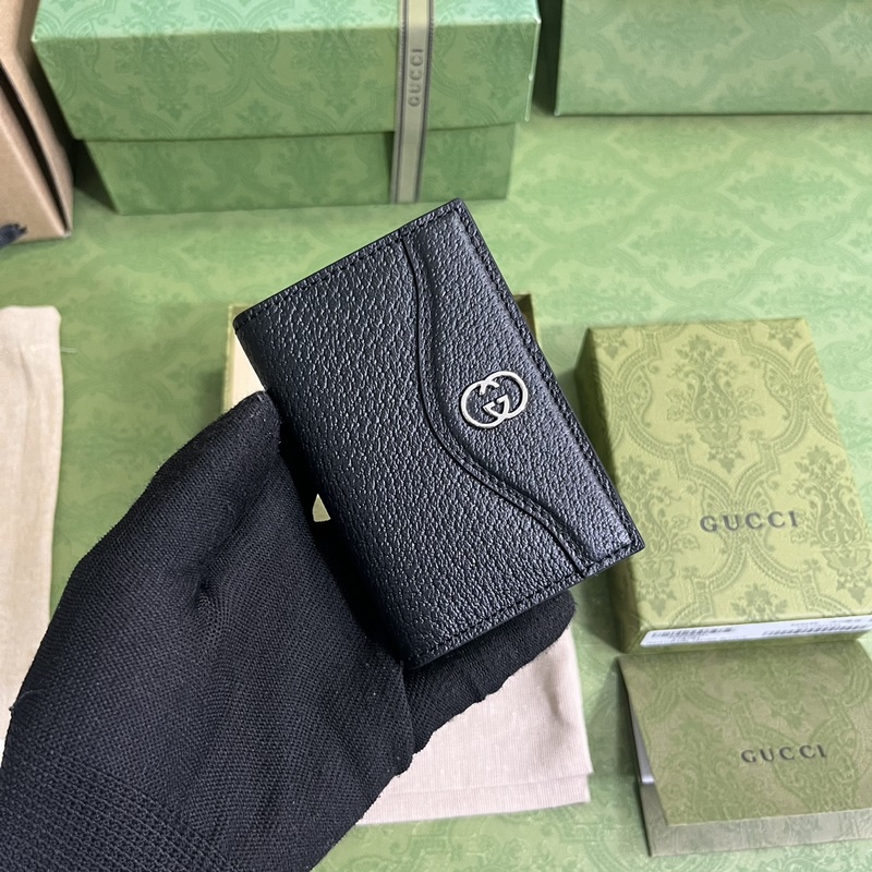 Porte-cartes interactif Gucci Double G en cuir noir, design classique