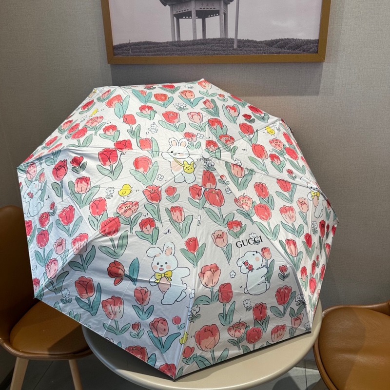 Parapluie pliant GUCCI Tulip Rabbit, triple protection UV, résistant à l’eau