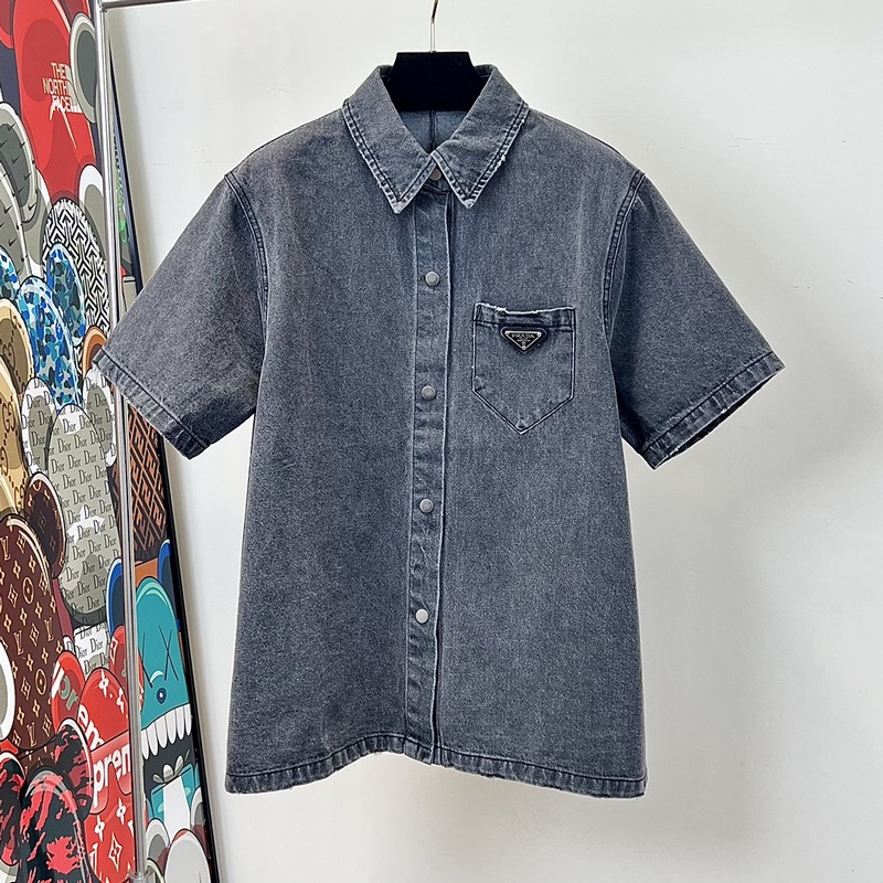 Chemise en jean Prada à logo triangulaire, vêtements de mode de haute qualité