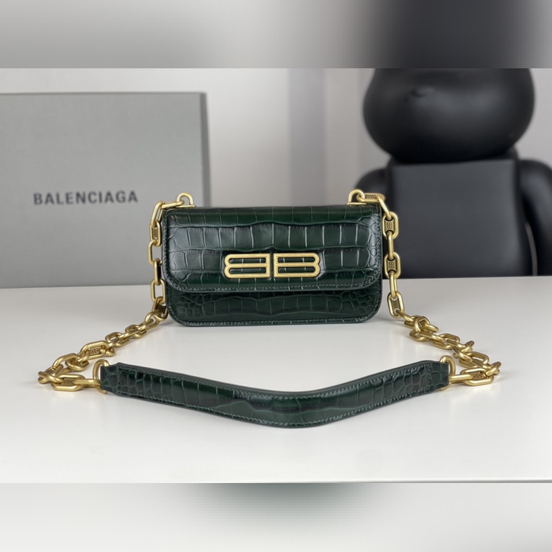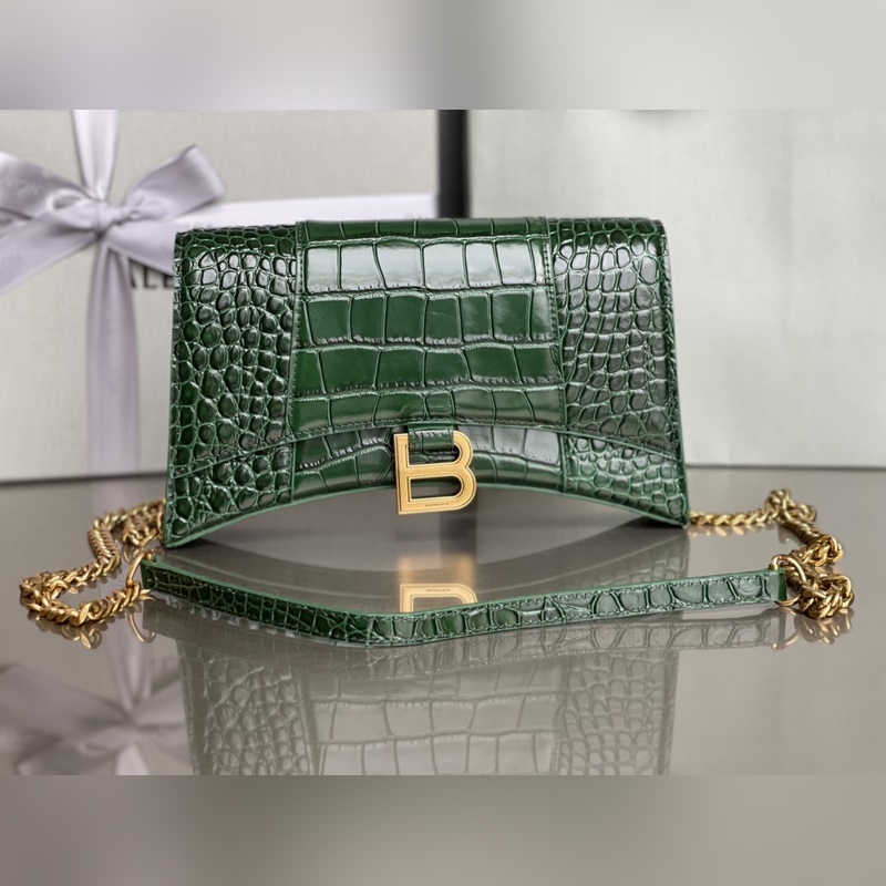 Sac réplique Balenciaga à motif crocodile et chaîne en sablier verte avec détails dorés