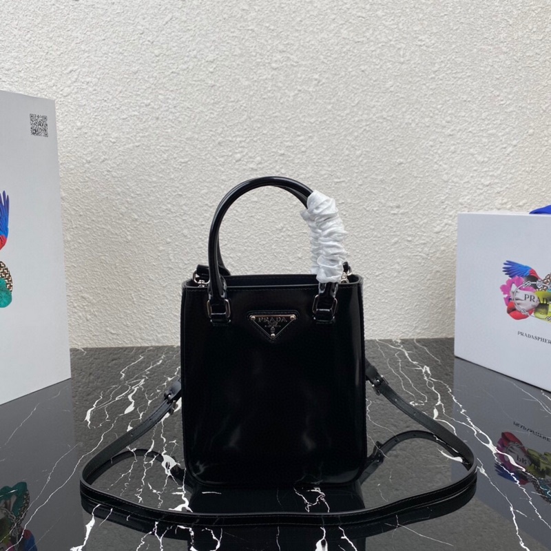 Grand sac seau Prada 1BA330, réplique, neuf, cuir de veau brillant de qualité