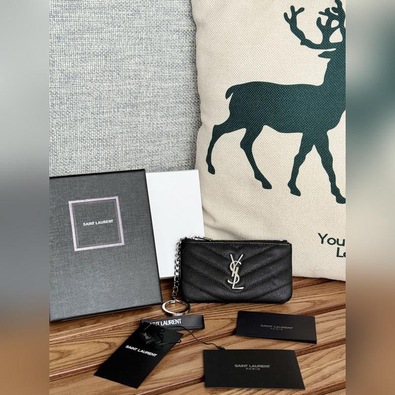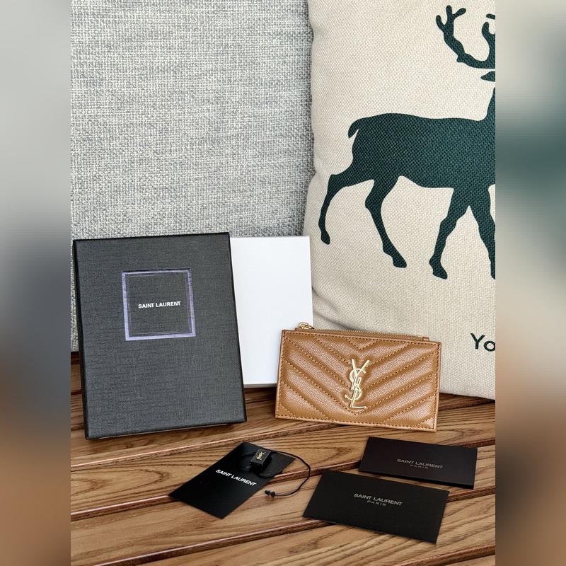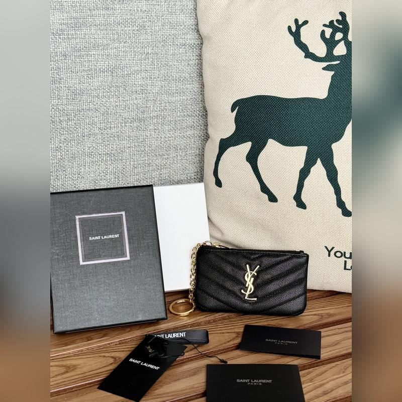 Porte-cartes YSL Saint Laurent en cuir grainé boule, élégant et de qualité supérieure