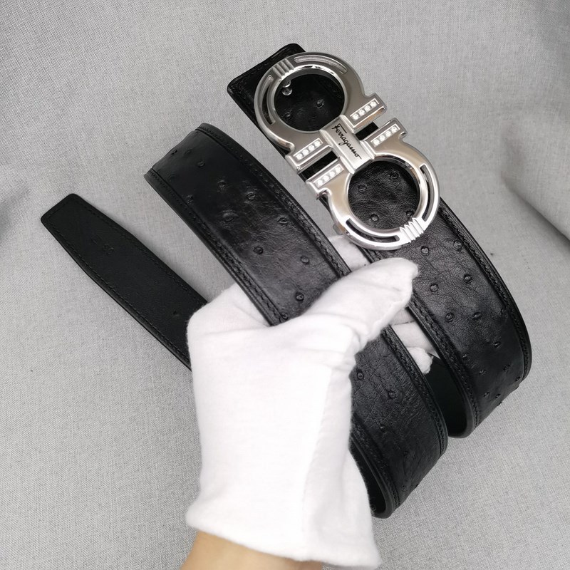 Ceinture en cuir d’autruche sans couture, largeur 3,8 cm, longueur 100-112 cm, fabrication haut de gamme