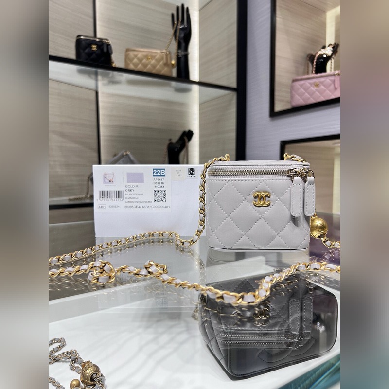 Chanel 23B New Color Small Box avec chaîne réglable et sphère dorée en cuir d’agneau