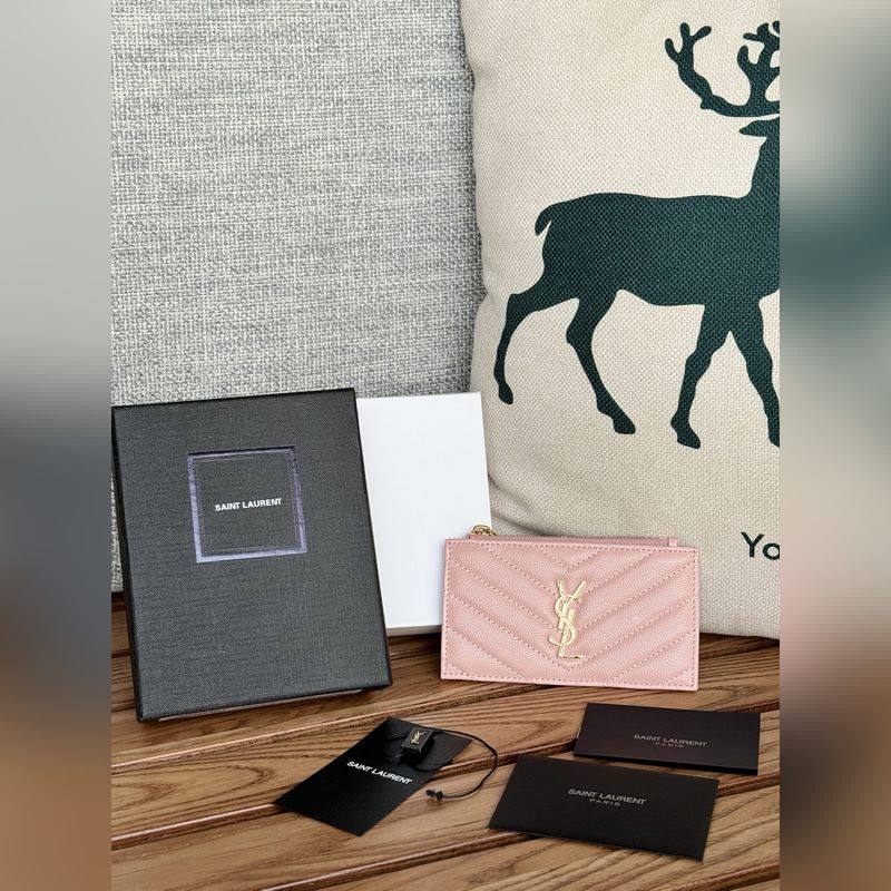 Porte-cartes YSL Saint Laurent en cuir grainé boule, élégant et de qualité supérieure
