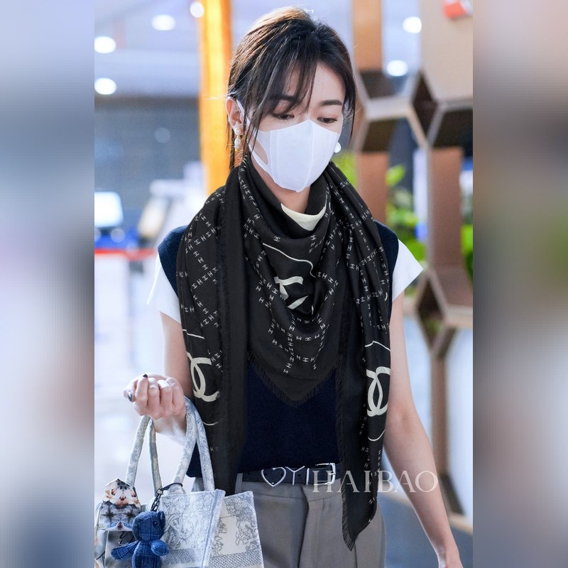 Écharpe en cachemire Chanel New Double C Logo 140 avec franges