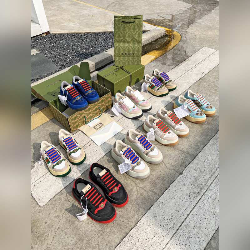 Baskets épaisses Gucci Screener Couple 2024 à semelle épaisse et effet vieilli